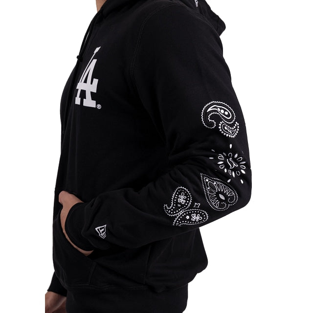 Esta Sudadera de Los Angeles Dodgers Paisley Elements presenta detalles inspirados en paisley bordados en ambas mangas, el logo del equipo impreso en el pecho del lado izquierdo y la bandera de New Era bordada en la manga izquierd y en el hoodie. Cómprala ya.
