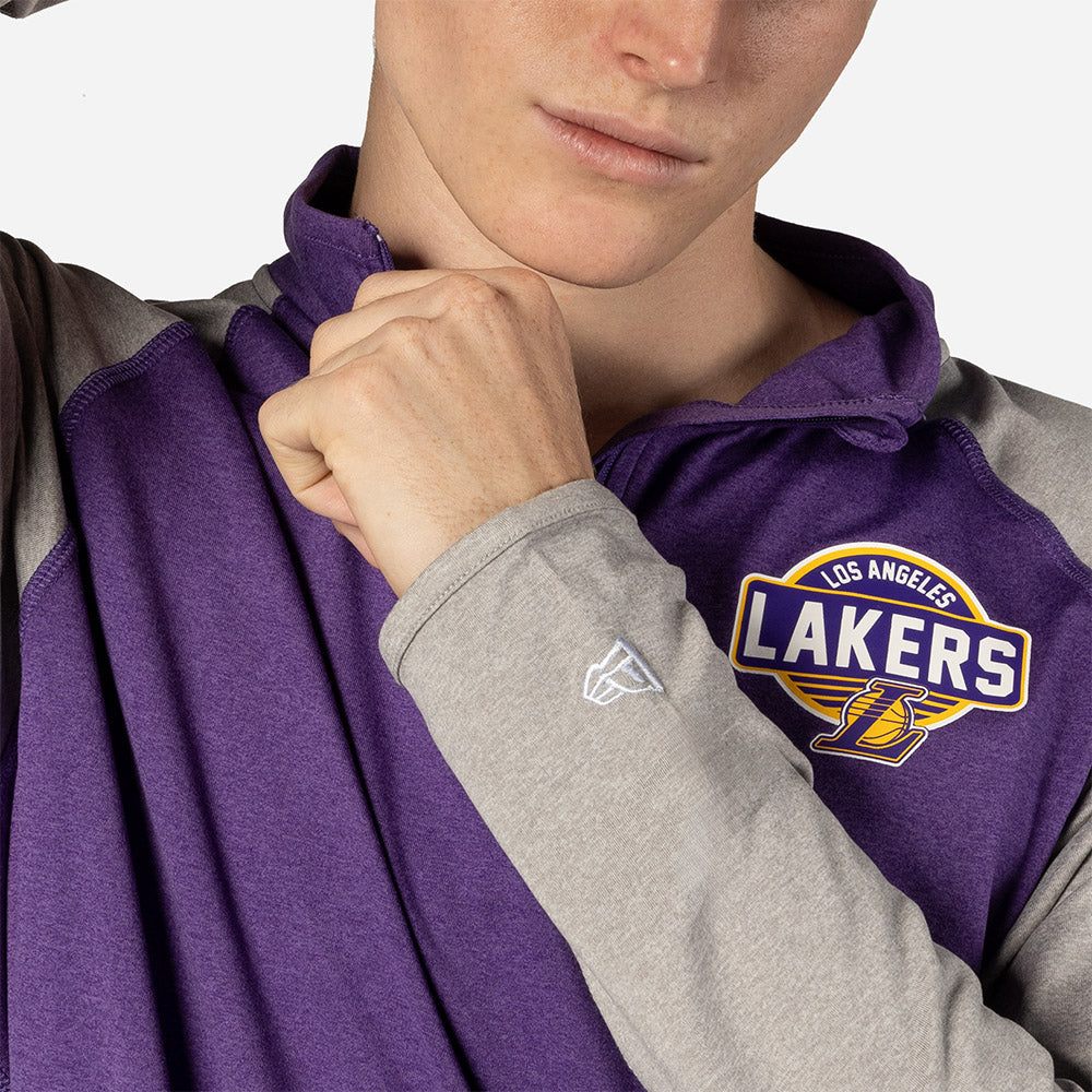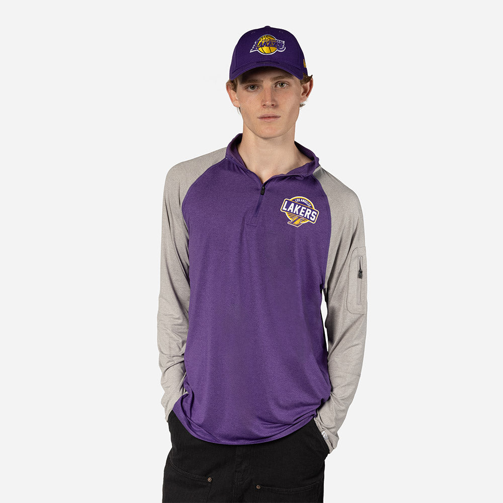 Esta Sudadera New Era de Los Angeles Lakers de la colección NBA Active presenta un diseño bitono con el logotipo y nombre de los Lakers estampados en el frente, un bolsillo con zipper y el flag de New Era ubicados en la manga izquierda. Luce con estilo y cómprala ya.