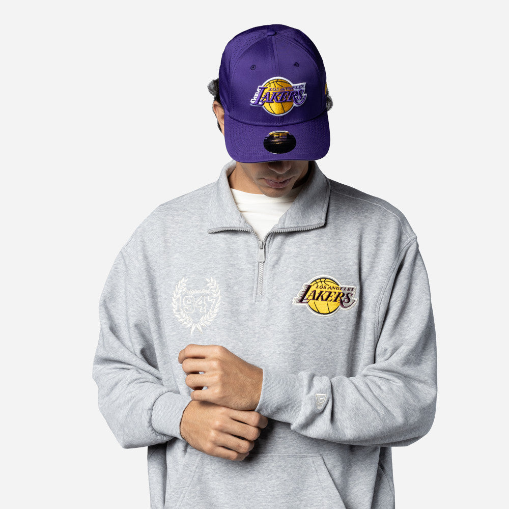 Esta Sudadera Quarter Zip New Era de Los Angeles Lakers de la colección NBA Heritage Classics presenta un diseño con el logotipo de los Lakers en la parte frontal y el flag de New Era bordado en la manga izquierda. Luce con estilo y cómprala ya.