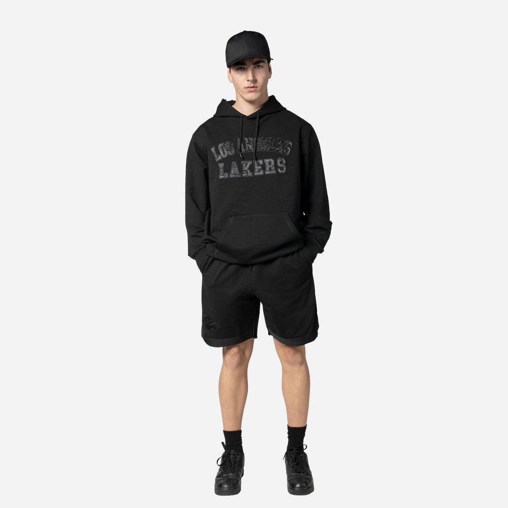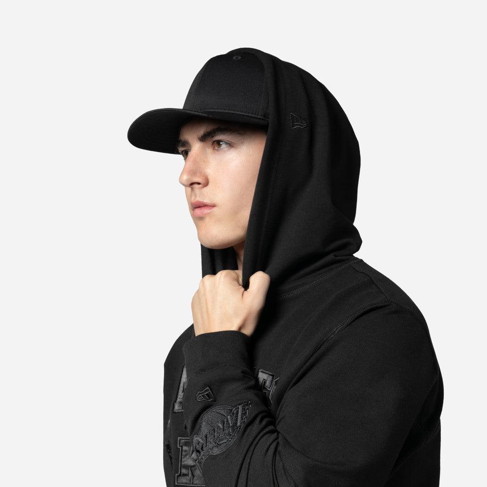 Esta Sudadera New Era de Los Angeles Lakers de la colección NBA Logo Select Black on Black presenta un diseño en color negro con el nombre de los Lakers en la parte frontal, el logo del equipo y el flag de New Era bordados en la manga izquierda. Completa tu outfit y cómprala ya.