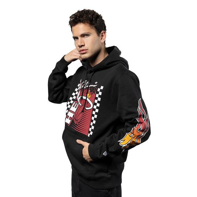 Esta Sudadera New Era de Miami Heat de la colección NBA Rally Drive presenta el logotipo y el nombre del Heat entre banderas a cuadros con un diseño que hace referencia a las carreras de autos, flamas a lo largo de las mangas y el flag de New Era bordado en la manga izquierda. Dale un toque a tu outfit y cómprala ya.