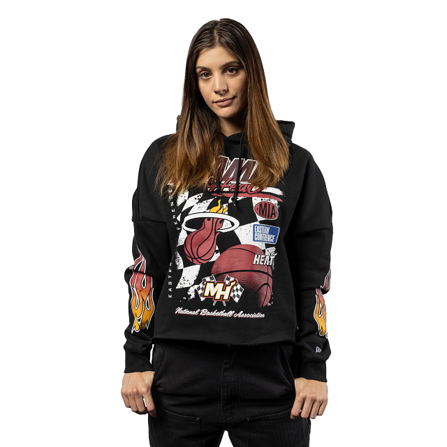Esta Sudadera New Era para Mujer de Miami Heat de la colección NBA Rally Drive presenta un diseño que hace referencia a las carreras de autos con el logotipo y nombre del Heat estampados cubriendo todo el pecho, flamas a lo largo de las mangas y el flag de New Era bordado en la manga izquierda. Dale un toque a tu outfit y cómprala ya.