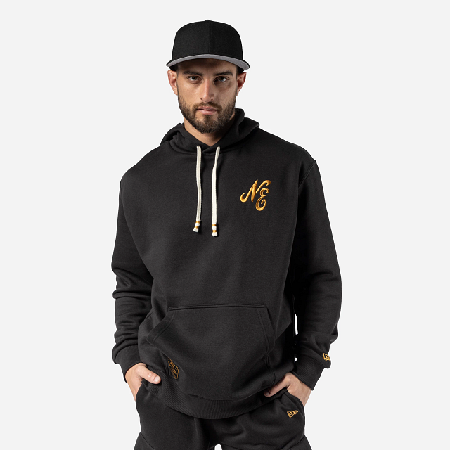 Esta Sudadera New Era de la colección New Era Heritage se convertirá en un básico de tu día a dia con un diseño unicolor negro con el logo retro de New Era en dorado bordado en el frente, la etiqueta de autenticidad en la bolsa y el flag de New Era bordado en la manga izquierda. Eleva tu outfit y cómprala ya.
