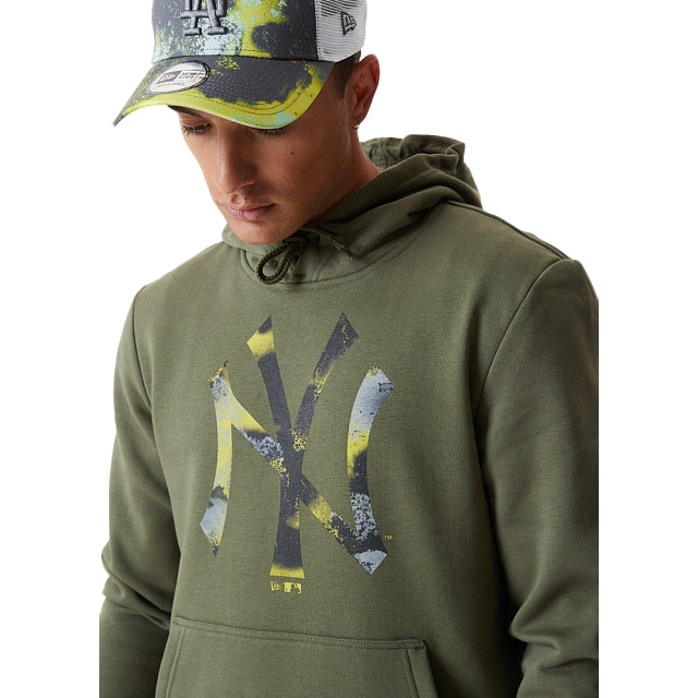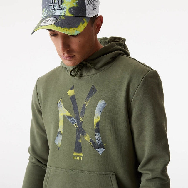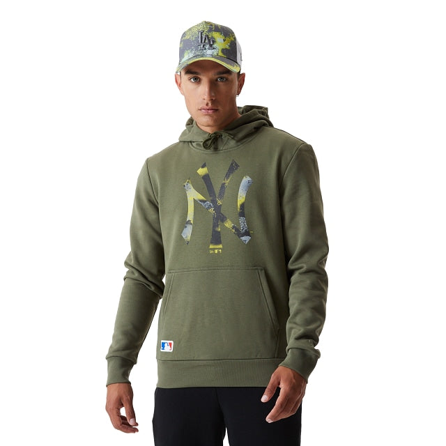 Esta sudadera New Era de la colección Camo Infill con hoodie de felpa cepillada 80% algodón y 20% poliéster cuenta con estampado digital del logotipo del equipo en el centro al frente. Etiqueta de la liga de insignia tejida en el lado derecho del bolsillo del usuario y bordado directo de la bandera de New Era en la manga izquierda.