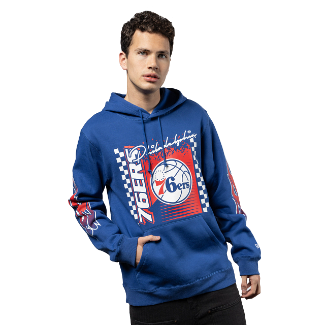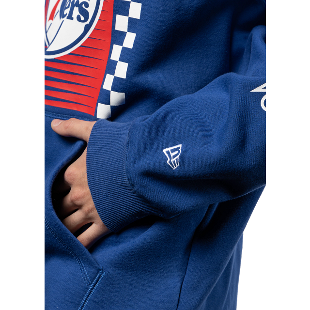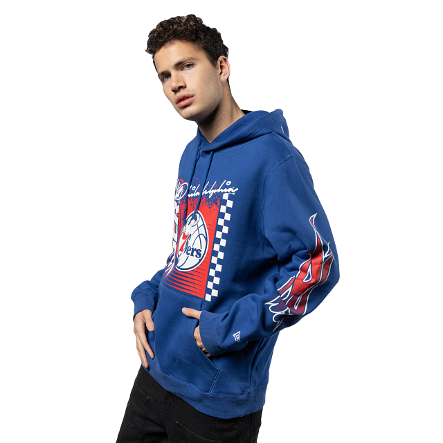 Esta Sudadera New Era de Philadelphia 76Ers de la colección NBA Rally Drive presenta el logotipo y el nombre de los 76Ers entre banderas a cuadros con un diseño que hace referencia a las carreras de autos, flamas a lo largo de las mangas y el flag de New Era bordado en la manga izquierda. Dale un toque a tu outfit y cómprala ya.