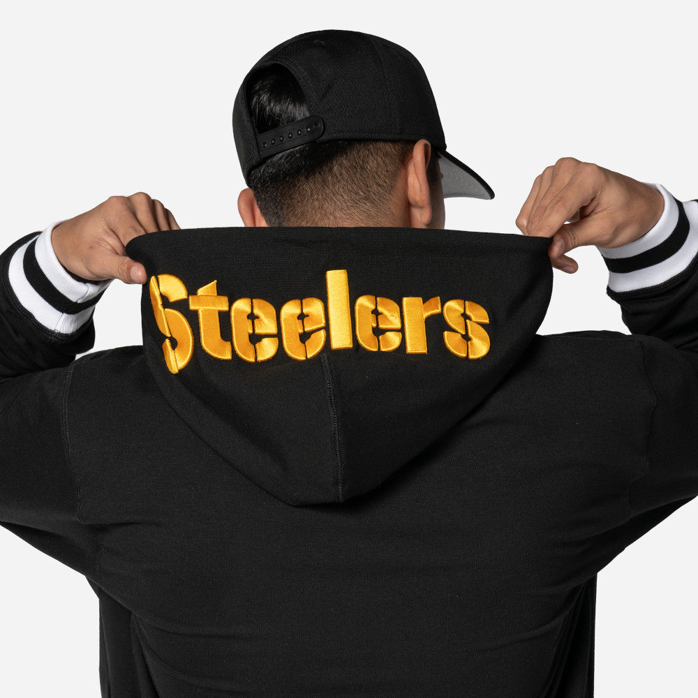 Este Sudadera New Era de la colección NFL Evergreen Collection presenta el logotipo de los Steelers en la parte frontal izquierda, el casco del equipo en la manga derecha, el nombre del equipo en la capucha y el flag de New Era bordado en la manga izquierda. Cómprala ya.