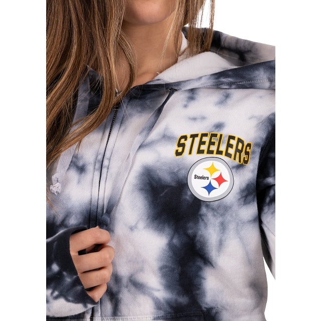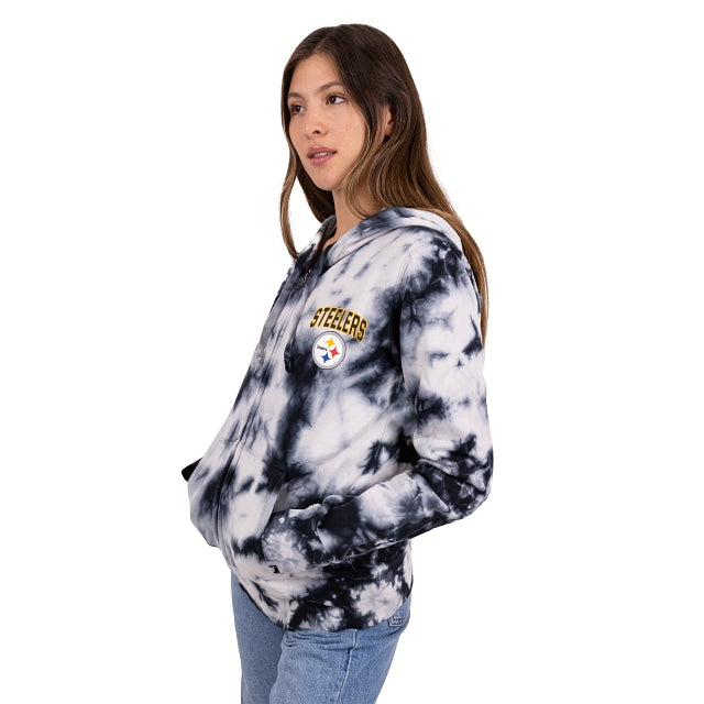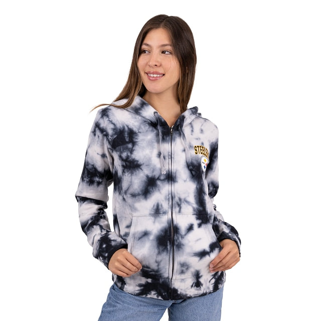 Esta Sudadera de Pittsburgh Steelers NFL Tie Dye para Mujer presenta el logotipo del equipo impreso al frente del lado izquierdo sobre un impresionante diseño tie-dye perfecta para compartir tu fandom con todo el mundo. Cómprala ya.