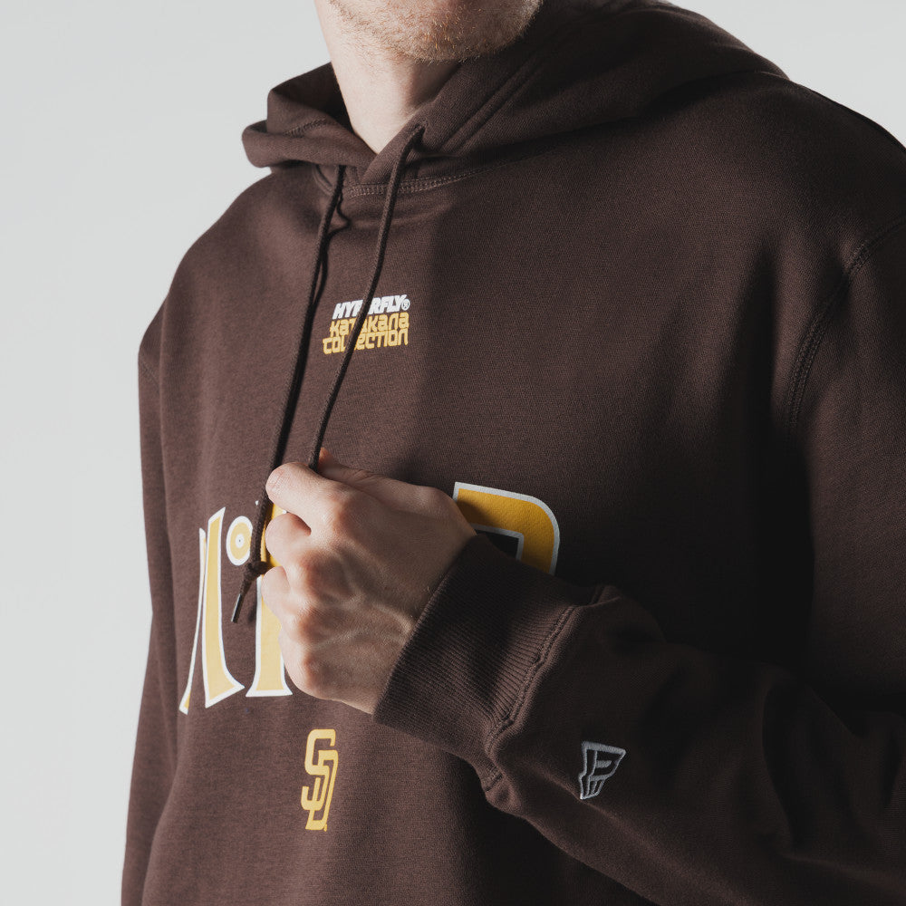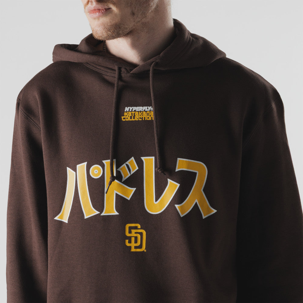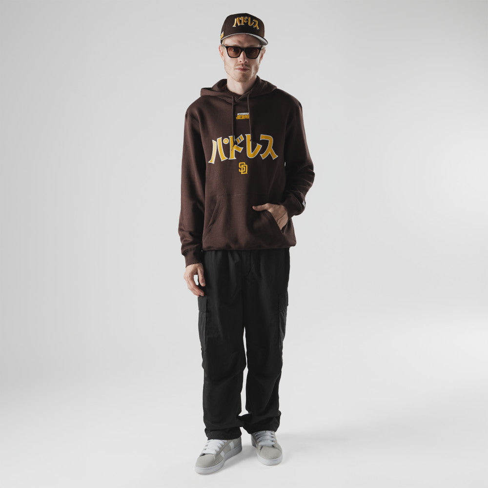 Esta Sudadera New Era de San Diego Padres de la colección Hyperfly Katakana X MLB presenta el nombre de la colaboración, el nombre de los Padres en japonés y el logotipo del equipo en la parte frontal y el flag de New Era bordado en la manga izquierda. Cómprala ya.