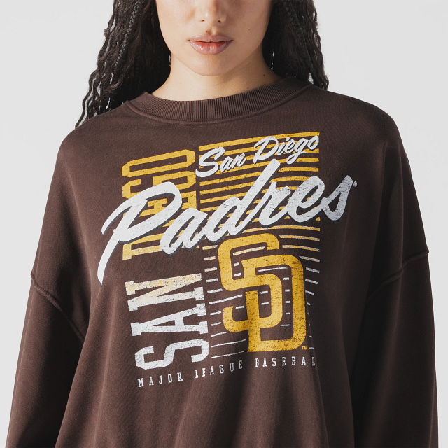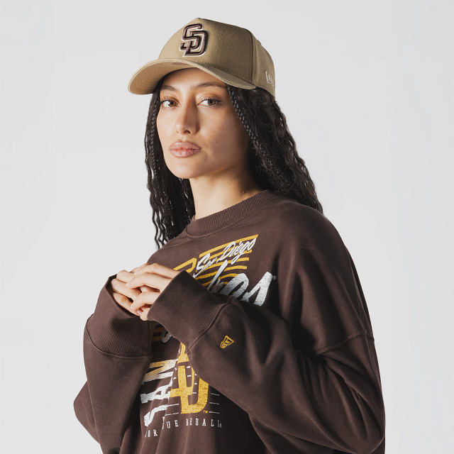 Esta Sudadera New Era para Mujer de San Diego Padres de la colección MLB Throwback presenta un estampado representativo de los Padres en la parte frontal y el flag de New Era bordado en la manga izquierda. Cómprala ya.