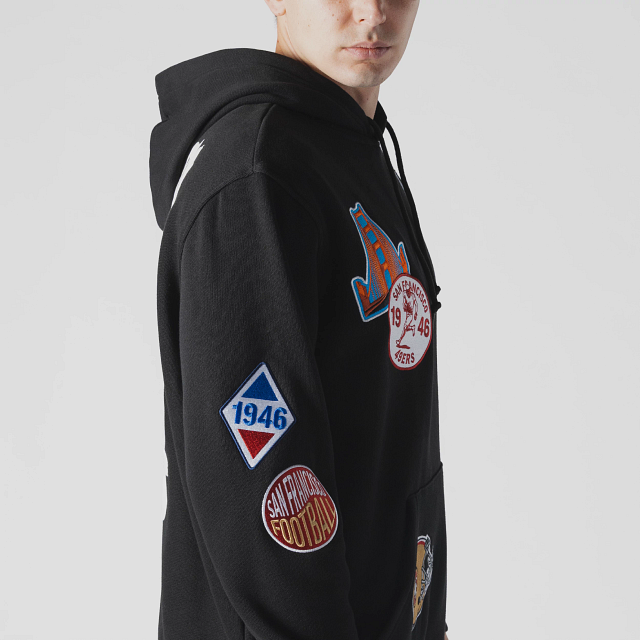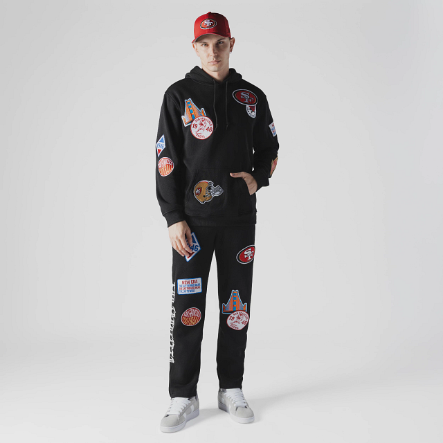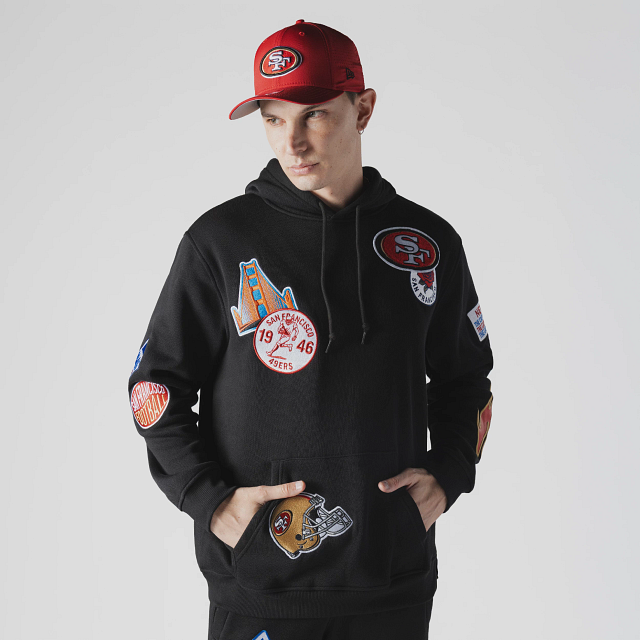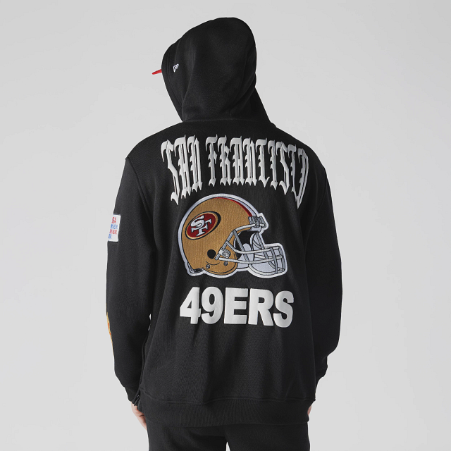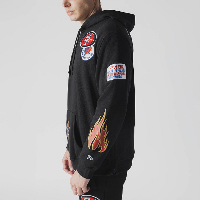 Esta Sudadera New Era de San Francisco 49Ers de la colección NFL Uptown Threads presenta un diseño en color negro con el logotipo y parches representativos de los 49Ers en la parte frontal, nombre del equipo en diferentes tipografías en la parte de atrás y el flag de New Era bordado en la manga izquierda. Cómprala ya.