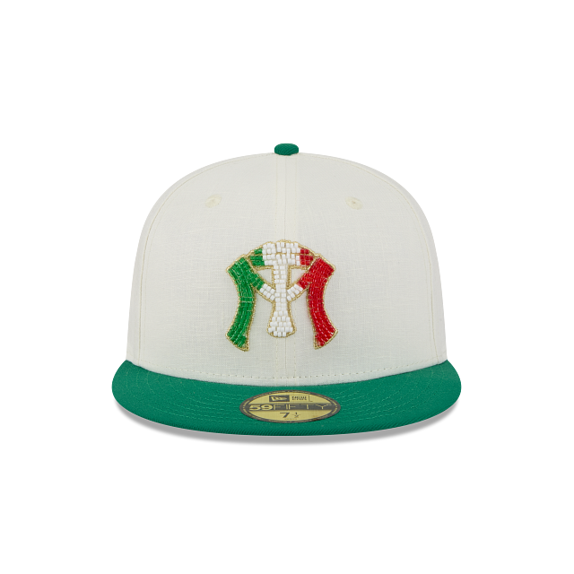 Esta gorra plana New Era 59FIFTY de Sultanes de Monterrey de la colección LMB Beaded Linen presenta un diseño en lino inspirado en los colores patrios con el logotipo de los Sultanes relleno de cuentas en los paneles frontales, un parche representativo del equipo del lado derecho, el logo de la LMB al reverso y el flag de New Era bordado del lado izquierdo. Cómprala ya.