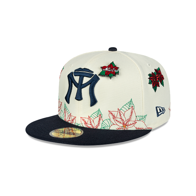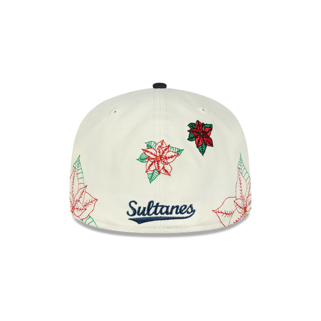 Esta gorra plana New Era 59FIFTY de Sultanes de Monterrey de la colección LMB Nochebuena presenta un diseño con el logotipo de los Sultanes bordado en los paneles frontales junto con un pin en forma de flor de nochebuena, hojas de nochebuena en toda la corona, un parche representativo del equipo del lado derecho, el nombre del equipo al reverso y el flag de New Era bordado del lado izquierdo. Cómprala ya.