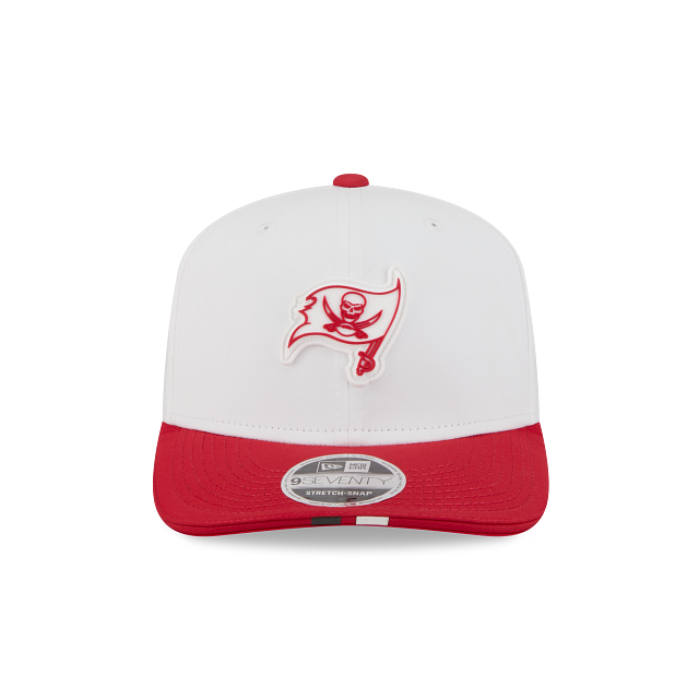 Esta gorra curva New Era 9SEVENTY Stretch Snap de Tampa Bay Buccaneers de la colección NFL Training 2025 presenta una corona en color blanco con el logotipo de los Buccaneers engomado en los paneles frontales, el logo de la NFL al reverso y el flag de New Era engomado del lado izquierdo. Apoya a tu equipo y cómprala ya.