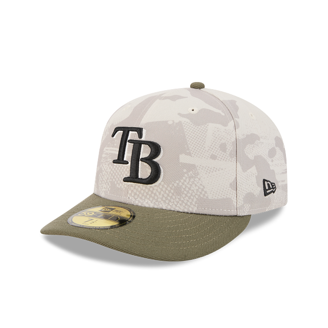 Esta gorra curva New Era 59FIFTY de Tampa Bay Rays de la colección MLB Armed Forces Day 2025 presenta un diseño de camuflaje en la corona con el logotipo de los Rays bordado en los paneles frontales, la bandera de Estados Unidos del lado derecho, el MLB Batterman al reverso y el flag de New Era bordado del lado izquierdo. Cómprala ya.