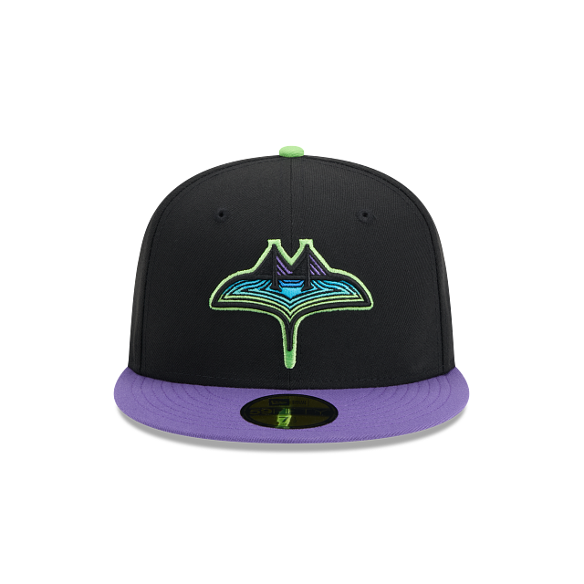Esta gorra plana New Era 59FIFTY de Tampa Bay Rays de la colección MLB City Connect inspirada en el jersey City Connect presenta el logotipo de los Rays bordado en los paneles frontales,el MLB Batterman al reverso, el undervisor en color gris y el flag de New Era bordado del lado izquierdo. Cómprala ya.
