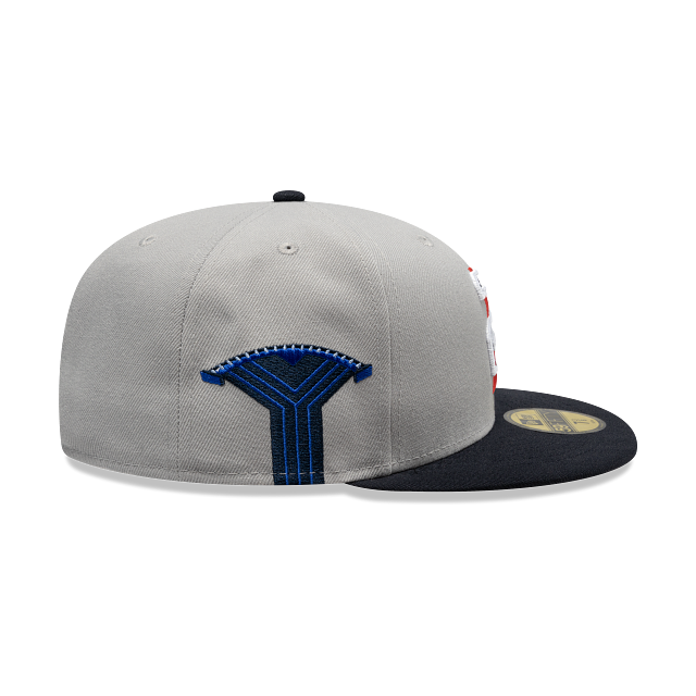 Esta gorra plana New Era 59FIFTY de Tecos 2 Laredos de la colección LMB City Connect presenta el logotipo de los Tecos bordado en los paneles frontales, el Puente de Laredo del lado derecho, el logo de la LMB 100 Aniversario al reverso, Laredos bordado en el visor y el flag de New Era bordado del lado izquierdo. Cómprala ya.