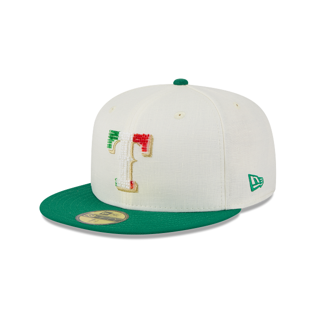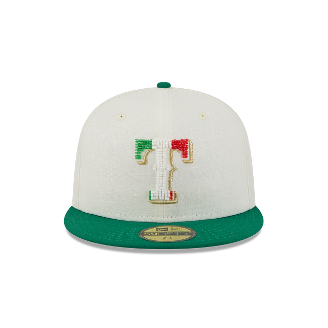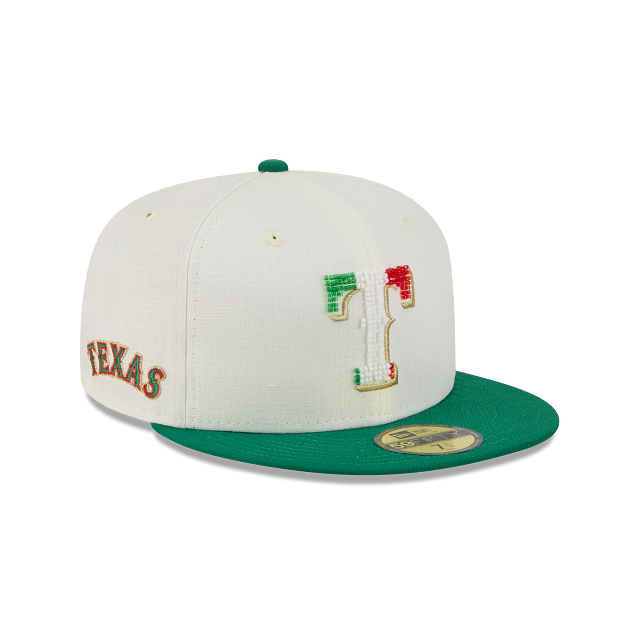 Esta gorra plana New Era 59FIFTY de Texas Rangers de la colección MLB Beaded Linen presenta un diseño en lino inspirado en los colores patrios con el logotipo de los Rangers relleno de cuentas en los paneles frontales, el nombre del equipo del lado derecho, el MLB Batterman al reverso y el flag de New Era bordado del lado izquierdo. Cómprala ya.