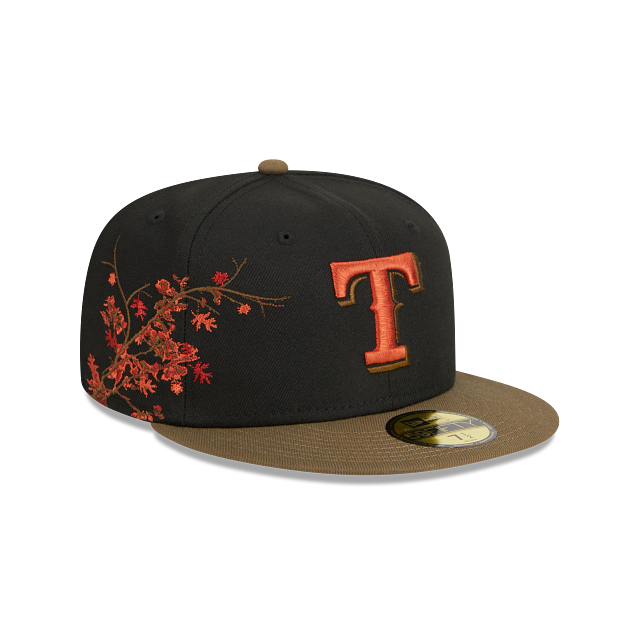 Esta gorra New Era 59FIFTY de Texas Rangers de la colección MLB Rustic Fall presenta un diseño con flores que destacan de la corona en color negro, el logotipo de los Rangers bordado en los paneles frontales, visera en color café, el Batterman al reverso y el flag de New Era bordado en el lado izquierdo. Cómprala ya.