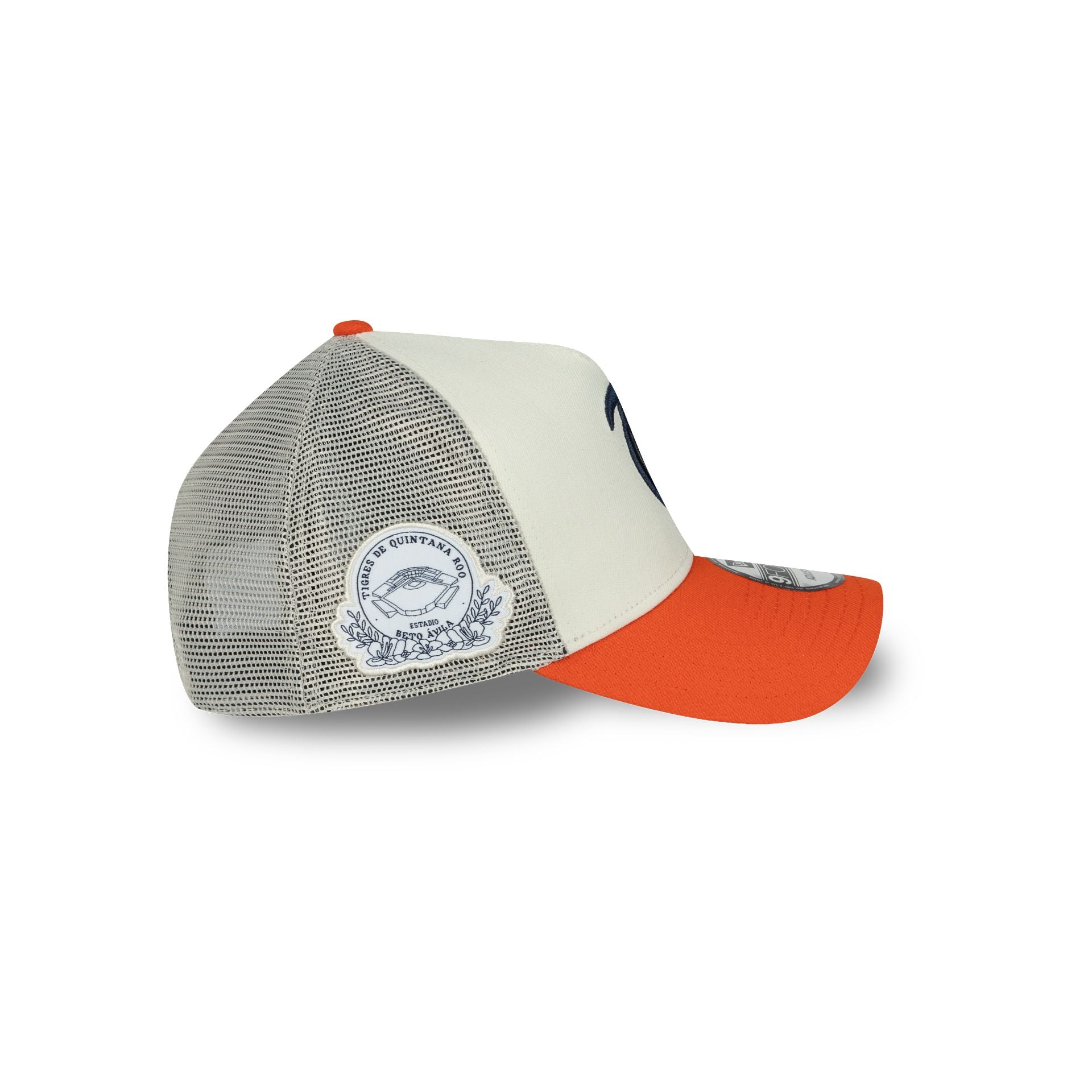Esta gorra New Era 9FORTY AF Trucker de Tigres de Quintana Roo de la colección LMB Athleisure presenta el logotipo de los Tigres bordado en los paneles frontales, un parche del estadio del lado derecho, mesh al reverso y el flag de New Era bordado en el lado izquierdo. Luce con estilo y cómprala ya.