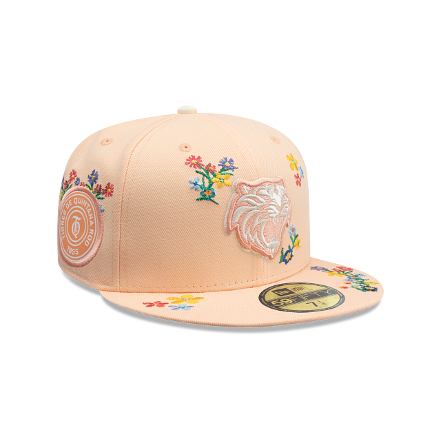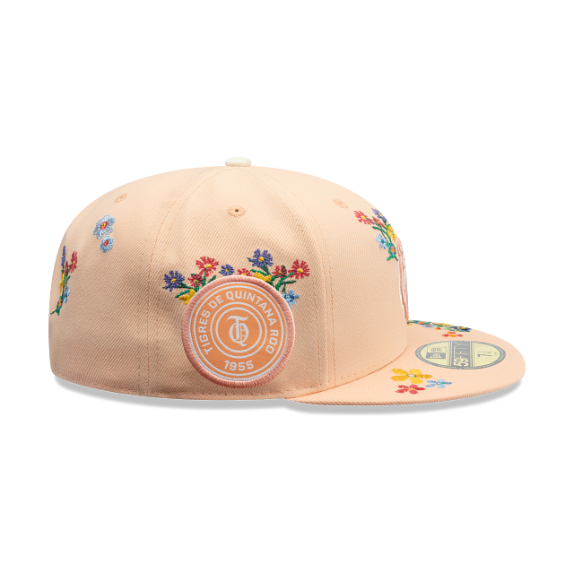 Esta gorra plana New Era 59FIFTY de Tigres de Quintana Roo de la colección LMB Bloom presenta un diseño floral con el logotipo de los Tigres bordado en los paneles frontales, un parche representativo del equipo del lado derecho, el nombre del equipo al reverso y el flag de New Era bordado del lado izquierdo. Cómprala ya.