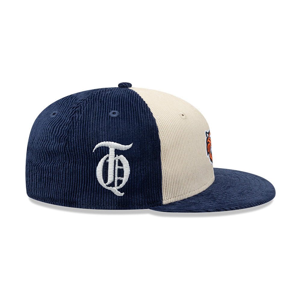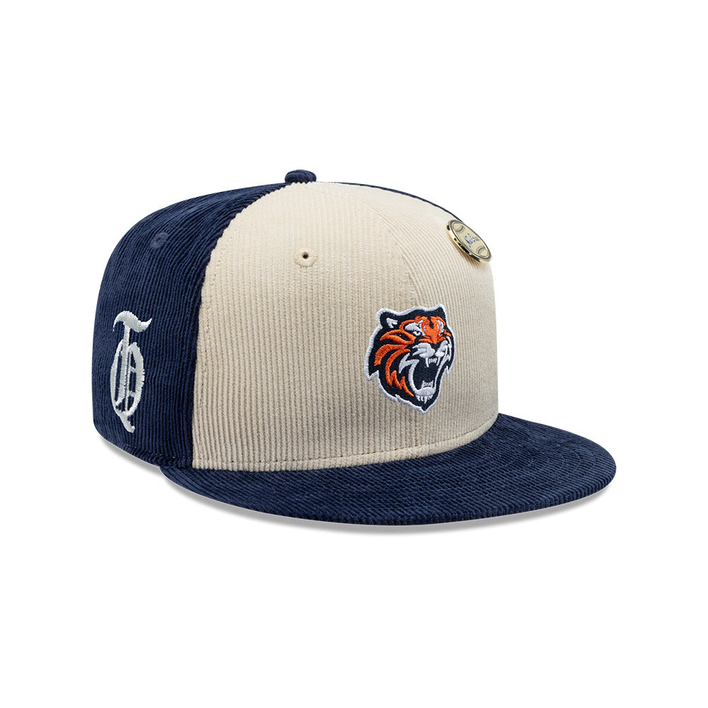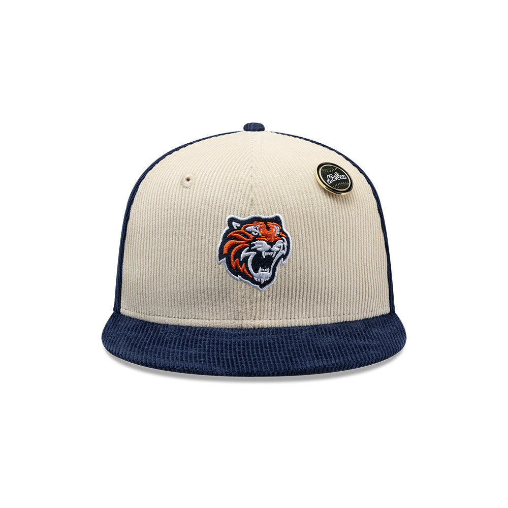 Esta gorra plana New Era 59FIFTY de Tigres de Quintana Roo de la colección LMB Corduroy Pin presenta un diseño en pana con el logotipo de los Tigres bordado en los paneles frontales junto con un pin New Era, el logo retro del equipo bordado del lado derecho, el nombre del equipo al reverso y el flag de New Era bordado del lado izquierdo. Cómprala ya.