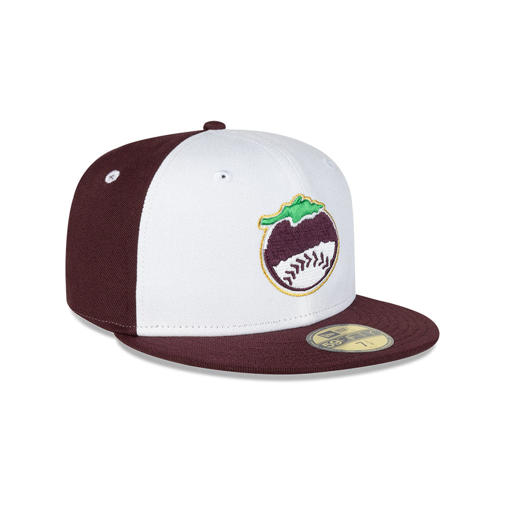 Esta gorra plana New Era 59FIFTY de Tomateros de Culiacán de la colección LAMP Game Caps 2024 presenta un diseño con el logotipo de los Tomateros bordado en los paneles frontales, el logo de la LAMP al reverso y el flag de New Era bordado del lado izquierdo. Cómprala ya.