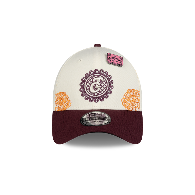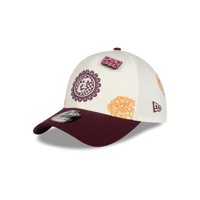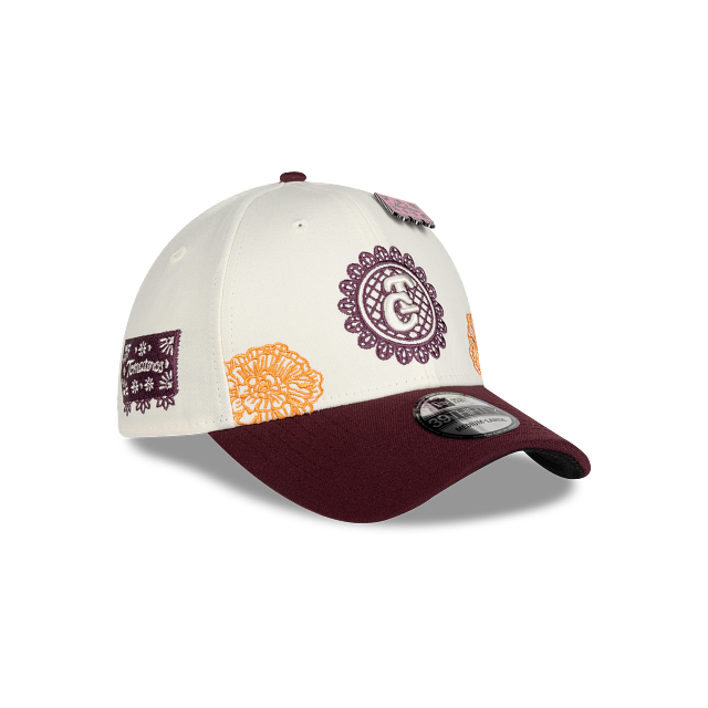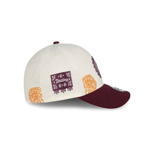 Esta gorra curva New Era 39THIRTY de Tomateros de Culiacán de la colección LAMP Día de Muertos presenta un diseño inspirado en la artesanía del papel picado con el logotipo de los Tomateros bordado en los paneles frontales, detalles de flores de cempasúchil en la corona, el logo de la LAMP al reverso, un pin en forma de papel picado y el flag de New Era bordado del lado izquierdo. Cómprala ya.