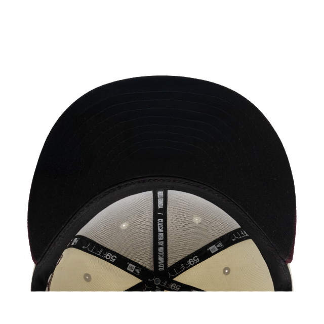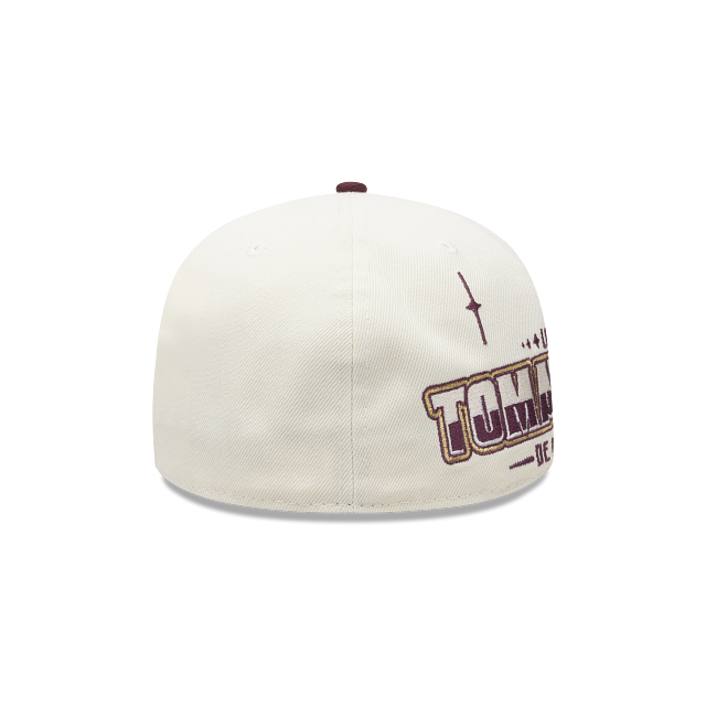 Esta gorra plana New Era 59FIFTY de la colección Tomateros de Culiacán X Watchavato LAMP presenta el logotipo de los Tomateros en los paneles frontales, el nombre del equipo del lado derecho y el flag de New Era bordado del lado izquierdo. Cómprala ya.
