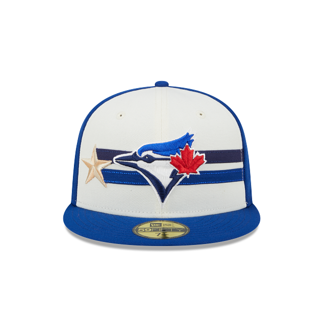 Las estrellas de las Grandes Ligas se reúnen en Texas. Forma parte del magno evento con esta gorra plana New Era 59FIFTY de Toronto Blue Jays de la colección MLB All Star Game Workout 2024 que presenta el logotipo de los Blue Jays en los paneles frontales blancos sobre dos líneas horizontales que forman el destello de una estrella, un diseño especial en el undervisor, parche del evento del lado derecho, MLB Batterman al reverso y el flag de New Era del lado izquierdo. Cómprala ya.
