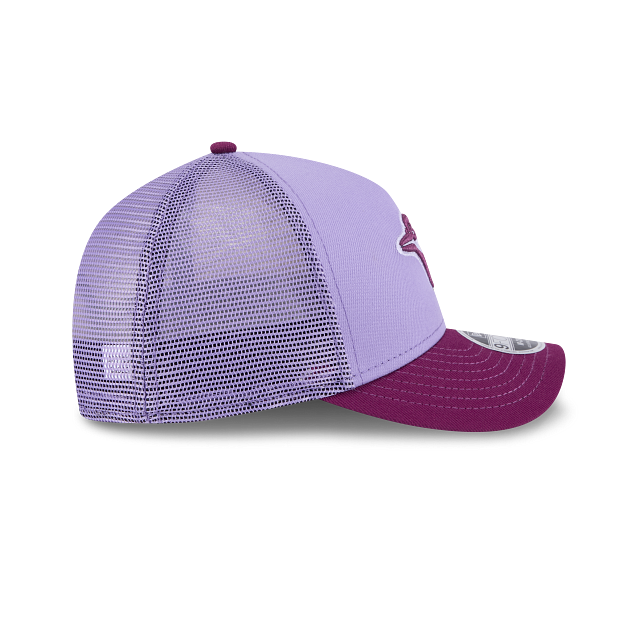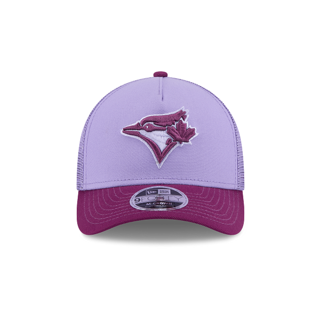 Esta gorra curva New Era 9FORTY M-Crown A-Frame de Toronto Blue Jays de la colección MLB Color Pack presenta un diseño en color morado con el logotipo de los Blue Jays bordado en los paneles frontales, malla trucker al reverso y el flag de New Era bordado del lado izquierdo. Cómprala ya.