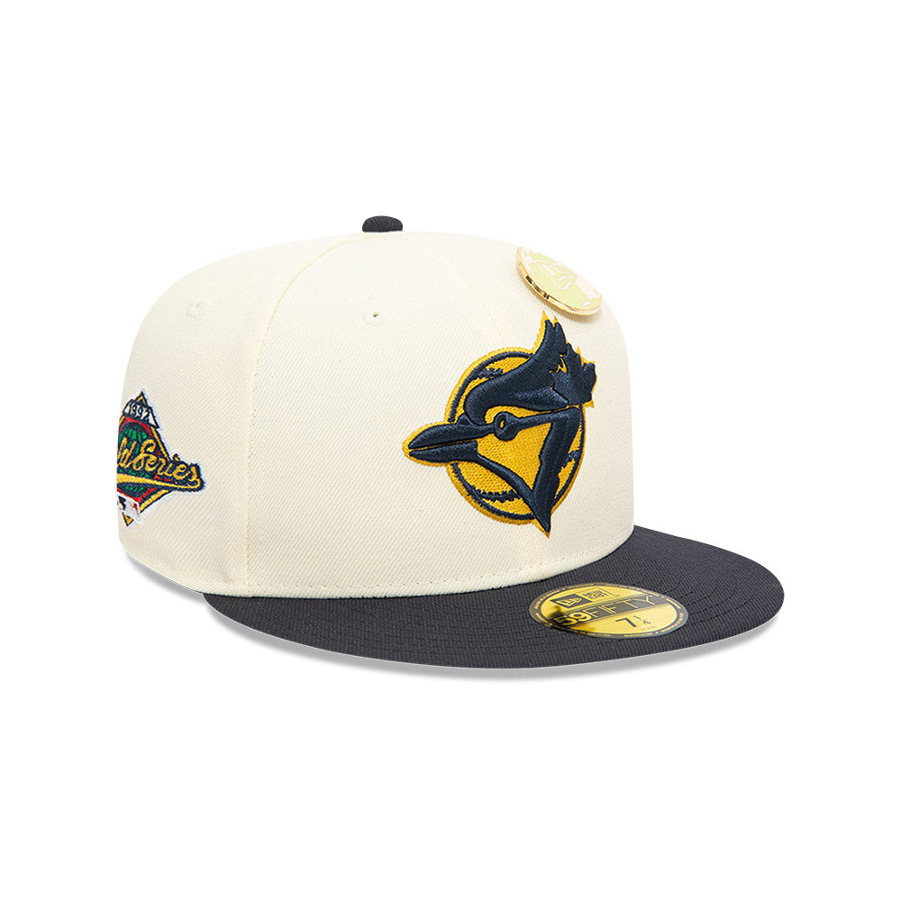 Esta gorra plana New Era 59FIFTY de Toronto Blue Jays de la colección MLB Contrast Pin presenta un diseño con el logotipo de los Blue Jays bordado en los paneles frontales acompañado de un pin de la colección, un parche World Series del lado derecho y el flag de New Era bordado del lado izquierdo. Cómprala ya.