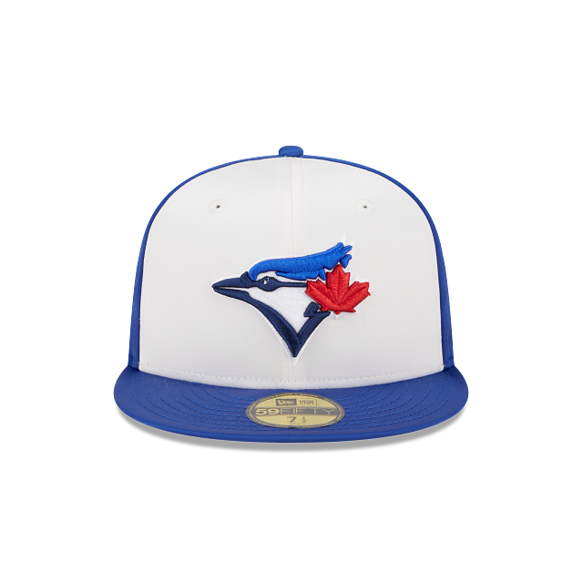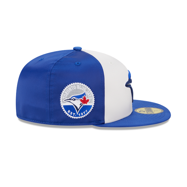 Esta gorra New Era 59FIFTY de Toronto Blue Jays de la colección MLB Satin presenta un elegante diseño satinado en dos colores con el logotipo de los Blue Jays bordado en los paneles frontales blancos, un parche conmemorativo del lado derecho, y el flag de New Era bordado en el lado izquierdo. Apoya a tu equipo y cómprala ya