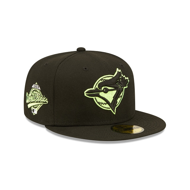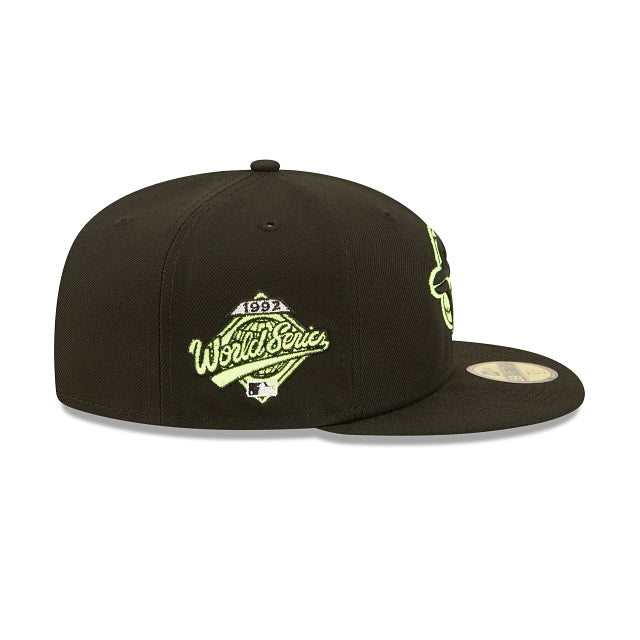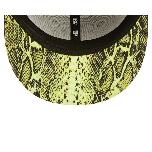 Esta gorra New Era 59FIFTY de Toronto Blue Jaysde la colección MLB Summer Pop presenta un logo de los Blue Jays en color neón bordado en los paneles frontales con un parche de World Series en el lado derecho y un logotipo de MLB Batterman en la parte trasera. Detalles adicionales incluyen una undervisor con estampado de piel de serpiente. Cómprala ya.