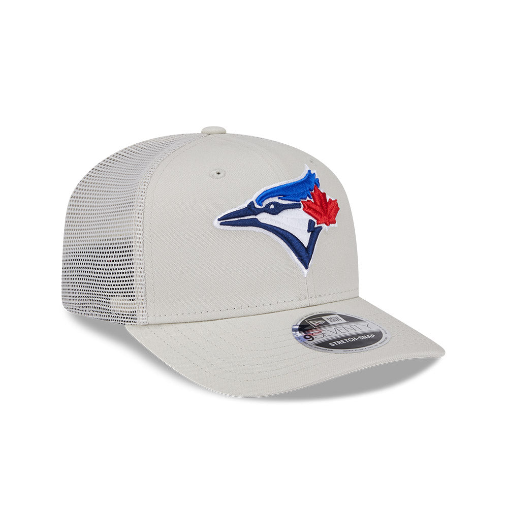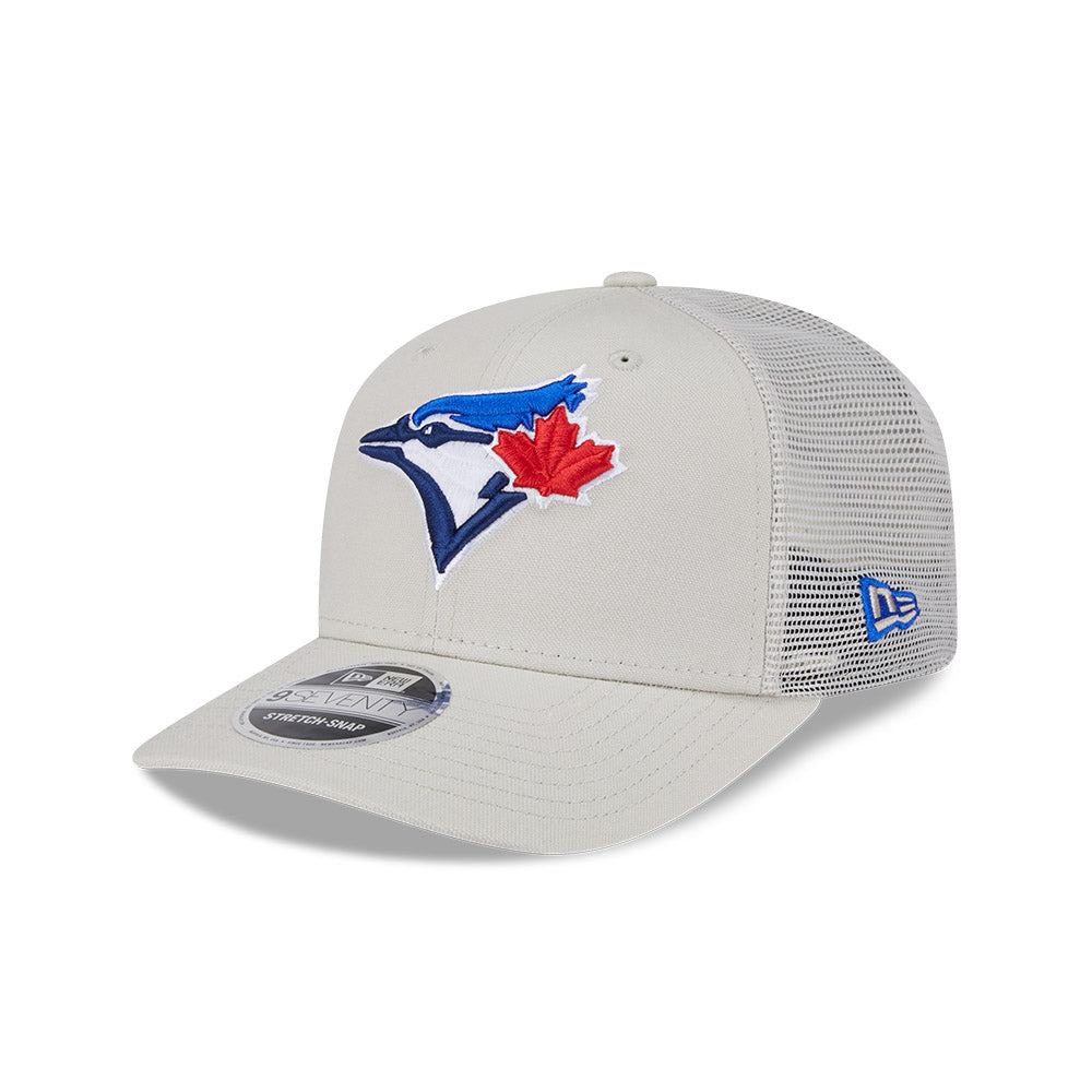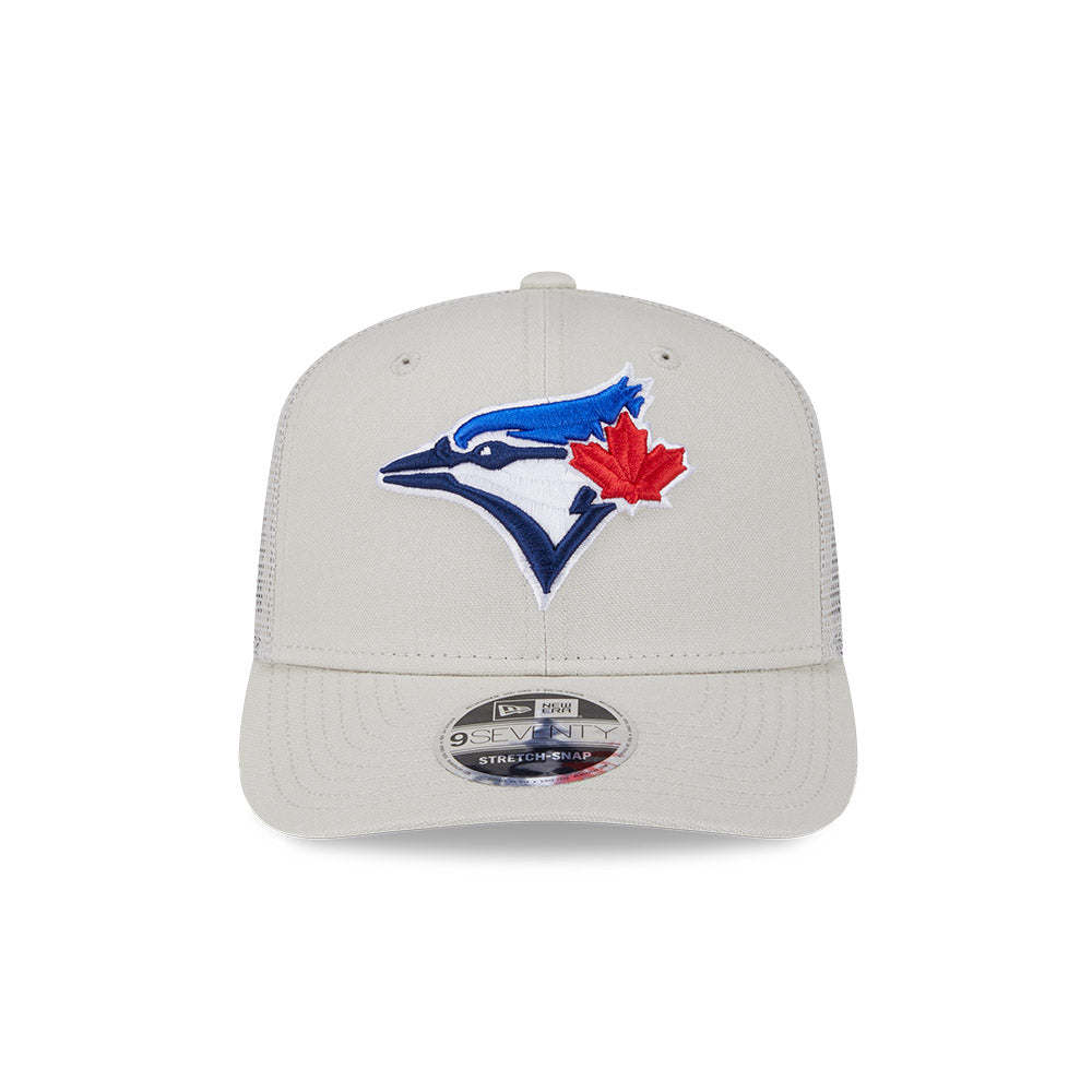Esta gorra curva New Era 9SEVENTY Stretch Snap de Toronto Blue Jays de la colección MLB Trucker Canvas presenta el logotipo de los Blue Jays bordado en los paneles frontales, malla trucker al reverso y el flag de New Era bordado del lado izquierdo. Cómprala ya.