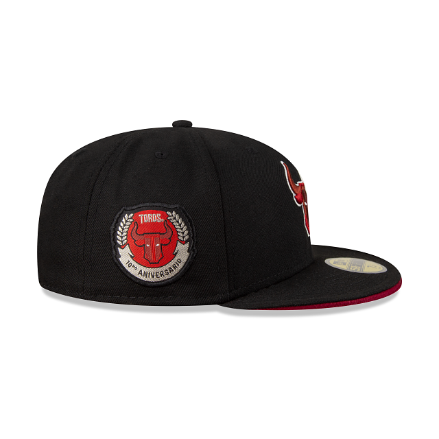 Esta gorra New Era 59FIFTY de Toros de Tijuana de la colección Toros Exclusive presenta un diseño negro con la mascota de los Toros como el logotipo bordado en los paneles frontales, un parche conmemorativo del 10 Aniversario del lado derecho, el logo de la LMB al reverso y el flag de New Era bordado en el lado izquierdo. Luce con estilo y cómprala ya.