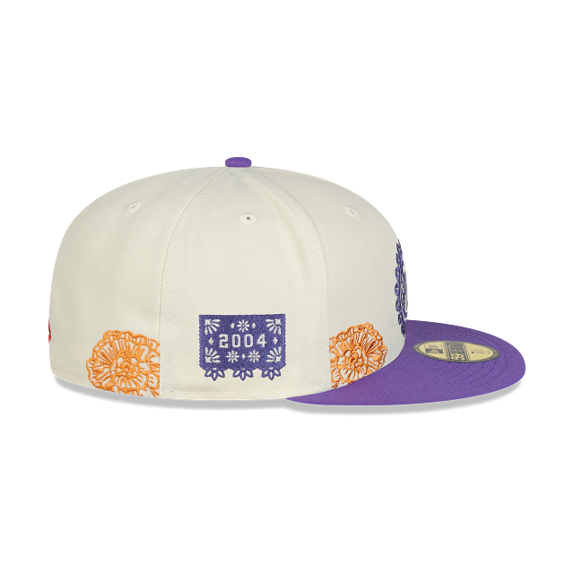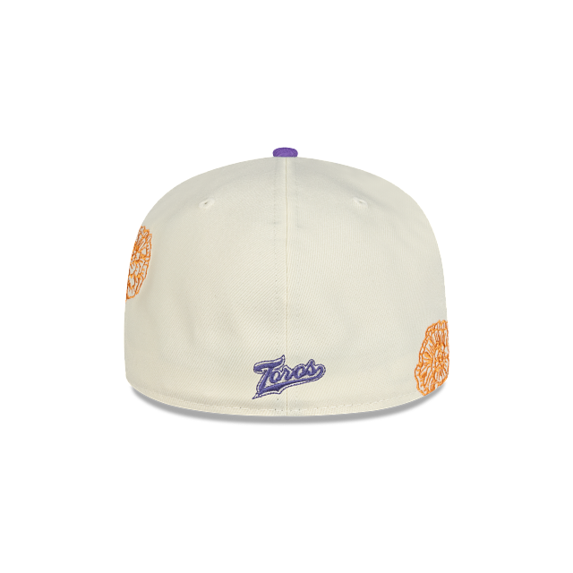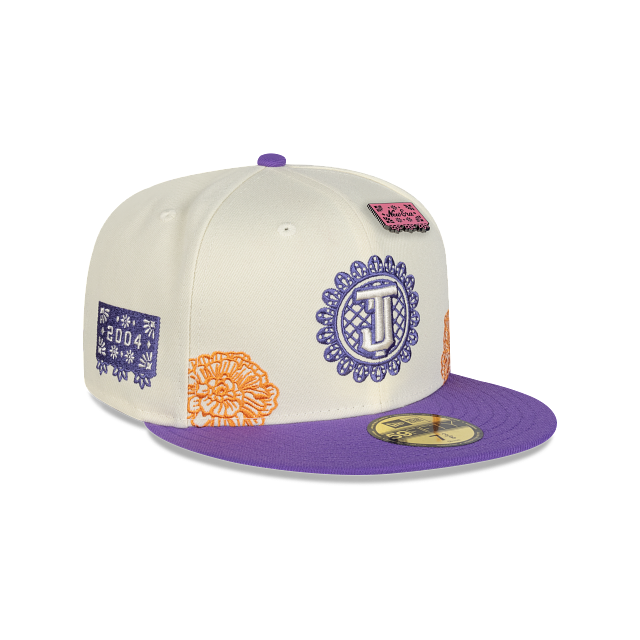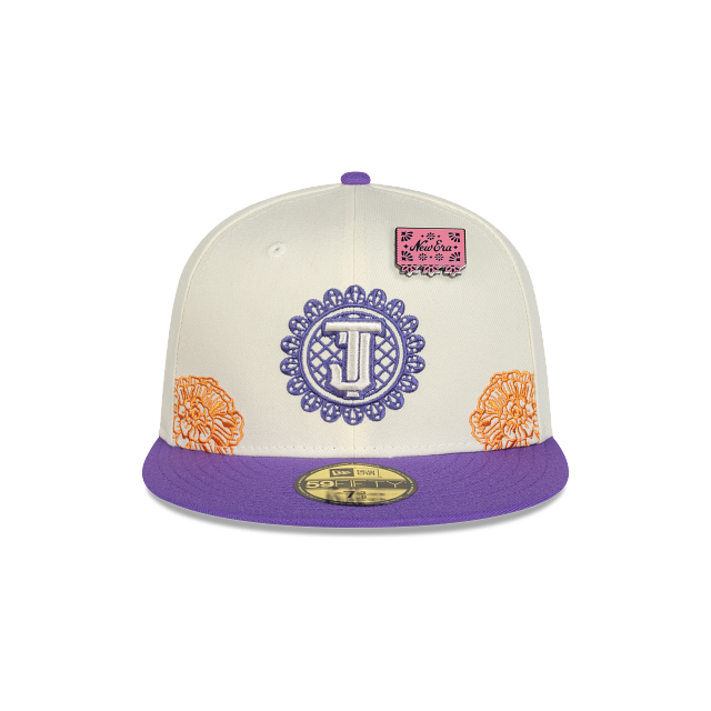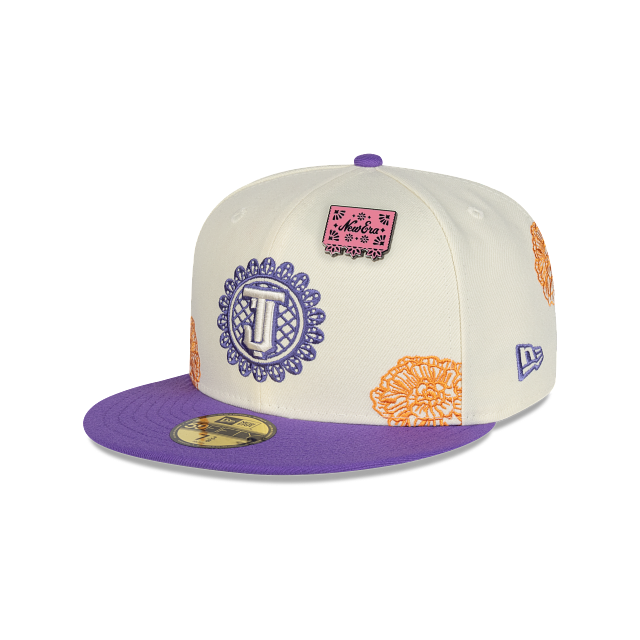 Esta gorra plana New Era 59FIFTY de Toros de Tijuana de la colección LMB Día de Muertos presenta un diseño inspirado en la artesanía del papel picado con el logotipo de los Toros bordado en los paneles frontales, detalles de flores de cempasúchil en la corona, el nombre del equipo al reverso, un pin en forma de papel picado y el flag de New Era bordado del lado izquierdo. Cómprala ya.