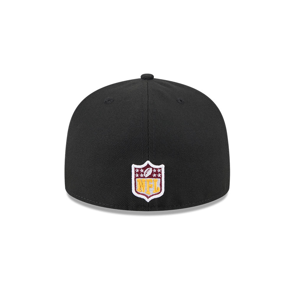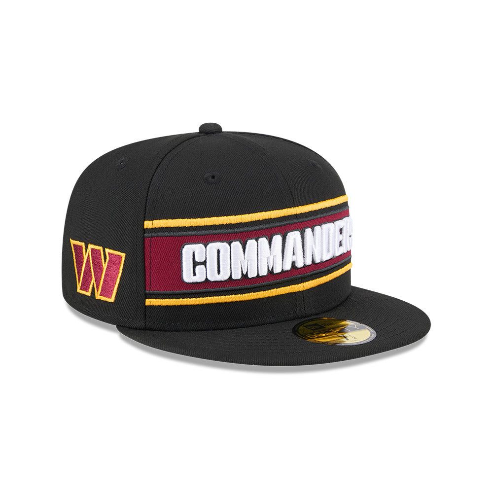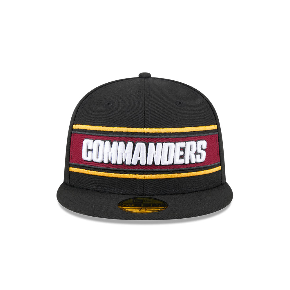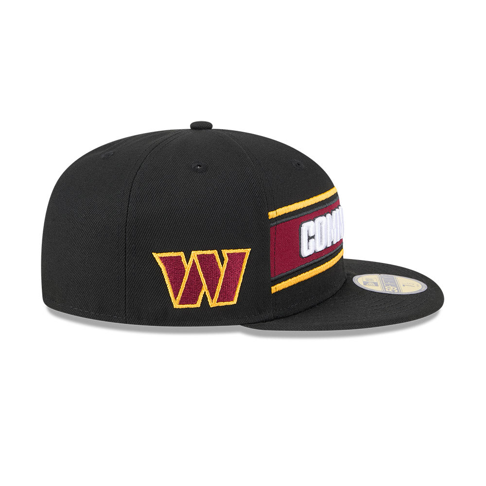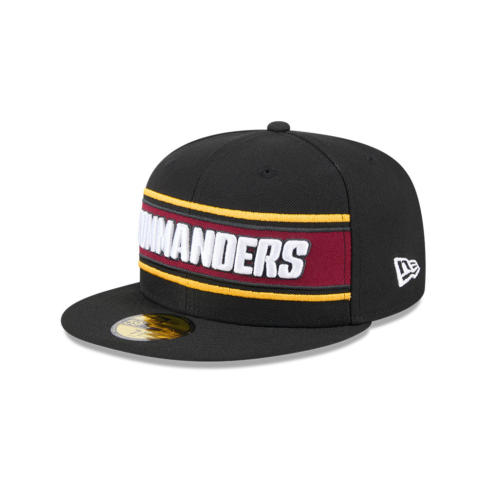 Esta gorra plana New Era 59FIFTY de Washington Commanders de la colección NFL Sideline 2024 presenta el nombre de los Commanders bordado en los paneles frontales sobre una franja en los colores del equipo, el logo del equipo de lado derecho, el logo de la NFL bordado en la parte trasera y el flag de New Era bordado en el lado izquierdo. Cómprala ya.