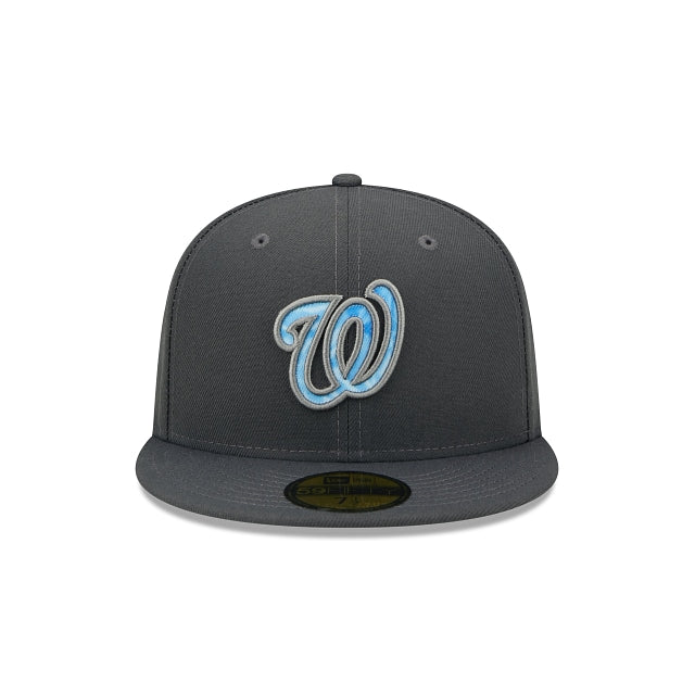 Celebra a papá con esta gorra 59FIFTY de Washington Nationals MLB Father's Day 2022 la cual presenta un logotipo azul de los Nationals bordado en los paneles frontales y el logo de MLB Batterman en la parte trasera. Detalles adicionales incluyen undervisor tie dye azul. Cómprala ya.
