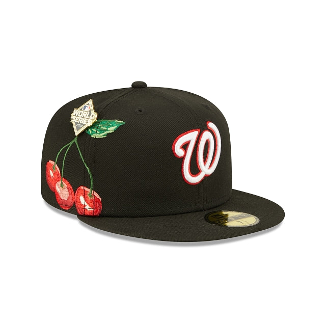 Esta gorra New Era 59FIFTY de Washington Nationals MLB Fruit presenta el logotipo de los Nationals en los paneles frontales, el logo de MLB Batterman en la parte trasera y una fruta bordada en el lado derecho. Detalles adicionales incluyen un pin de World Series. Cómprala ya.