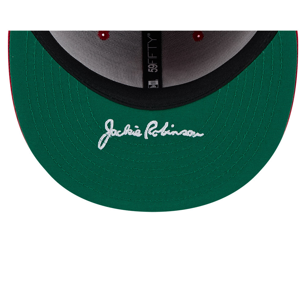 Esta gorra plana New Era 59FIFTY de Washington Nationals de la colección MLB Jackie Robinson Day 2025 presenta el logotipo de los Nationals bordado en los paneles frontales, un parche conmemorativo Jackie Robinson Breaking Barriers del lado derecho, la firma del jugador en el undervisor, el MLB Batterman al reverso y el flag de New Era bordado del lado izquierdo. Cómprala ya.