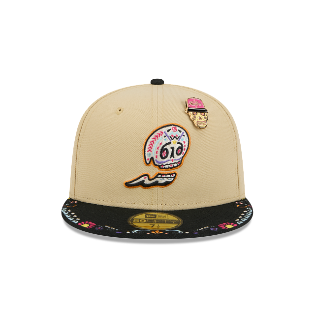 Esta gorra plana New Era 59FIFTY de West Michigan White Caps de la colección MiLB Skull Pin presenta un diseño inspirado en el Día de Muertos con un dibujo representativo bordado en los paneles frontales acompañado de un pin en forma de calavera, detalles bordados en el visor, el logo de la MiLB al reverso y el flag de New Era bordado del lado izquierdo. Cómprala ya.