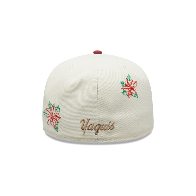 Esta gorra plana New Era 59FIFTY de Yaquis de Obregón de la colección LAMP Nochebuena presenta un diseño con flores de nochebuena bordadas en la corona, el logotipo de los Yaquis bordado en los paneles frontales, el nombre del equipo en la parte de atrás y el flag de New Era bordado del lado izquierdo. Cómprala ya.